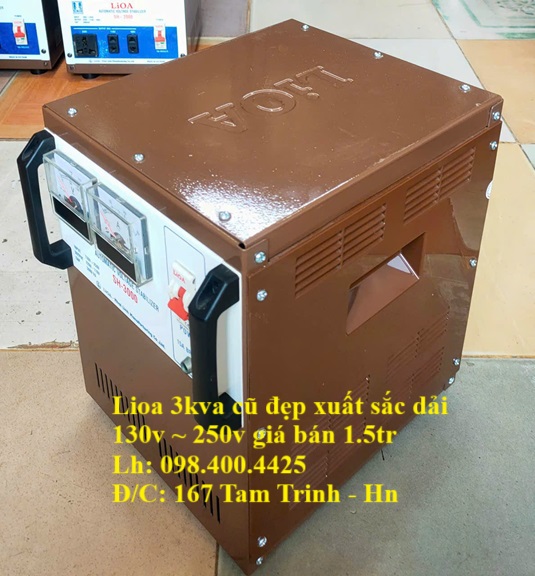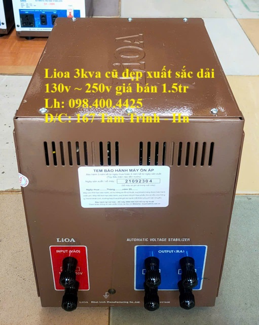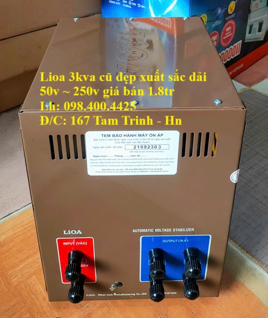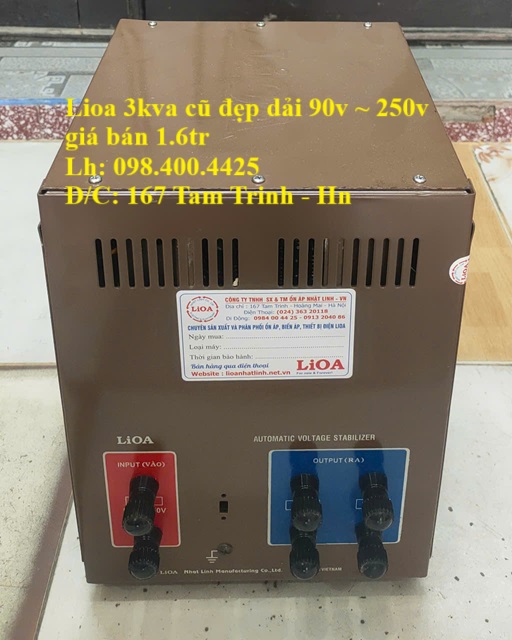 Hiện tại công ty TNHH Sx và Tm ổn áp Nhật Linh - Việt Nam đang có một số ổn áp lioa 3kva cũ, lioa 3kw cũ điện áp vào (150v ~ 250v), ( 130V ~ 250V), (90v ~ 250v), (50v ~ 250v), ổn áp lioa 3kva cũ còn nguyên bản, dây đồng 100% đã bảo trì bảo dưỡng toàn bộ máy, mới 80% trở lên cần bán thanh lý với giá rẻ, bảo hành 02 năm, lắp đặt vận chuyển miễn phí