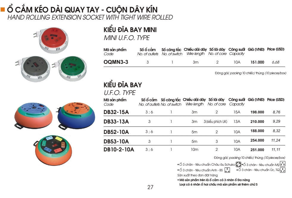 - Chi tiết đồng bên trong có thiết kế đặc biệt giúp cho việc cắm được các phích cắm theo tiêu chuẩn Mỹ, Nhật, Châu Âu phi 4, phi 5 ....luôn chặt chẽ, tiếp xúc tốt