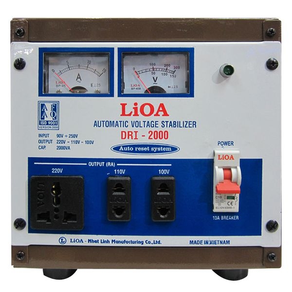 Ổn áp lioa 2kva - 2kw 1 pha model DRI - 2000 là loại ổn áp lioa công suất nhỏ điện áp vào dải rộng 90v ~ 250v, lioa 2kva dải 90v dùng tốt cho các thiết bị như máy tính, máy giặt, điều hòa 9BTU, tủ đá..vvv... và các thiết bị điện có công suất nhỏ hơn 1700w