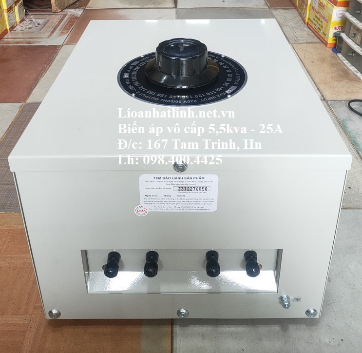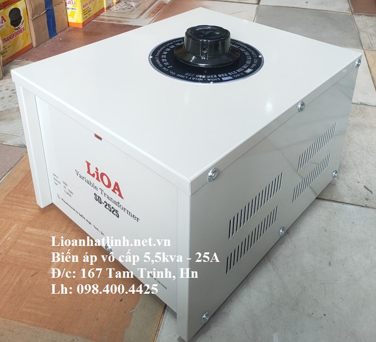 - Biến áp vô cấp lioa 1 pha SD - 2525 có công suất tối đa so với điện áp đầu ra 220v là 5.5kva