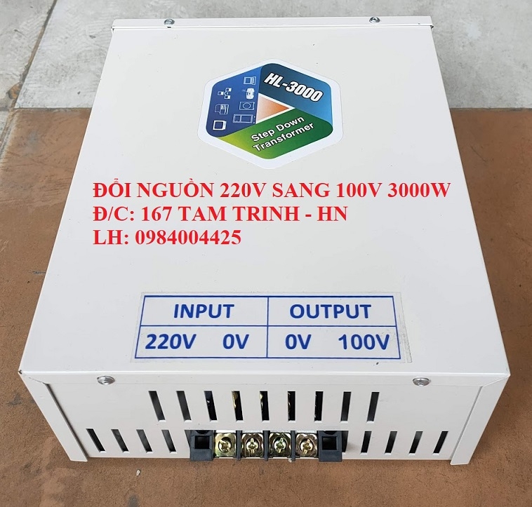 - Đổi nguồn 220v sang 100v 3000va có vỏ bằng sắt sơn tĩnh điện, bền và đẹp, có thể để nằm hoặc treo lên tường