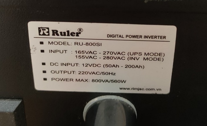 - Kích điện 12v lên 220v sin chuẩn 500w do hãng ruler sản xuất tự động kích khi mất điện, tự động sạc khi có điện lưới, tự ngắt khi ắc quy nạp đầy, có chắc năng lưu điện USB On line