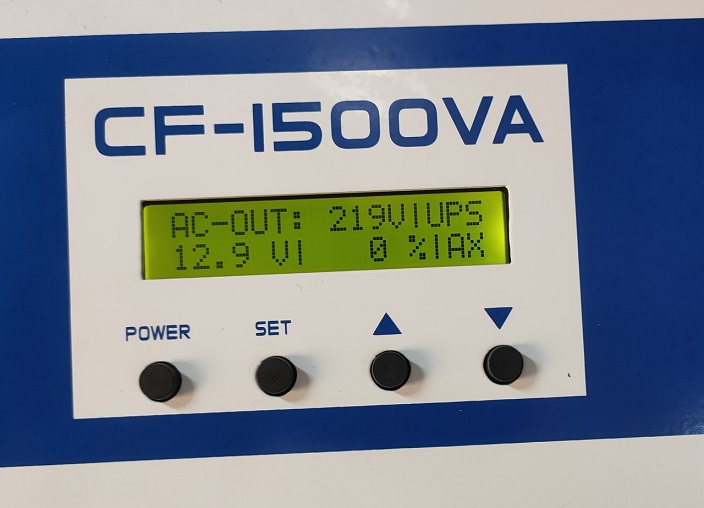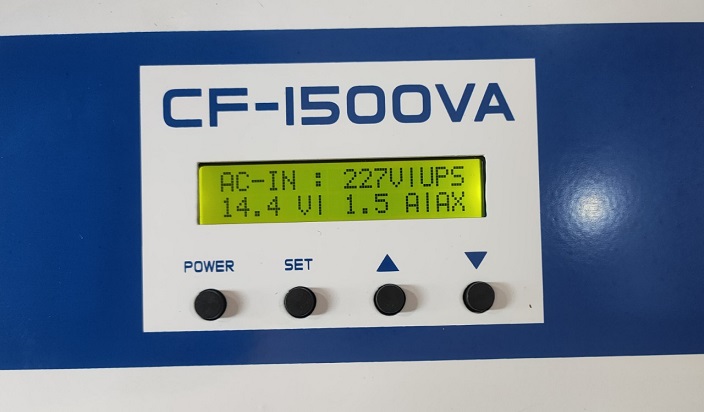 + Điện áp đầu vào: AC - IN : 227/ UPS có nghĩa là điện áp đầu vào là 227V, Máy đang hoạt động ở chế độ tự động kích điện - nạp ắc quy - Lưu điện