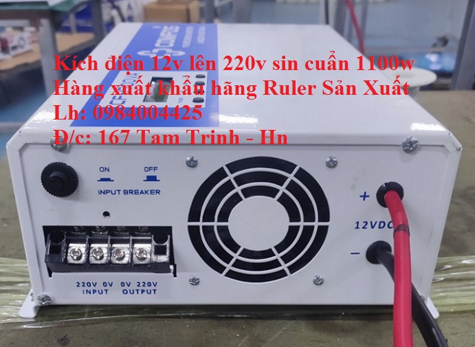 - Kích điện 12v lên 220v sin chuẩn 1000w do hãng ruler sản xuất tự động kích khi mất điện, tự động sạc khi có điện lưới, tự ngắt khi ắc quy nạp đầy, có chắc năng lưu điện UPS On line
