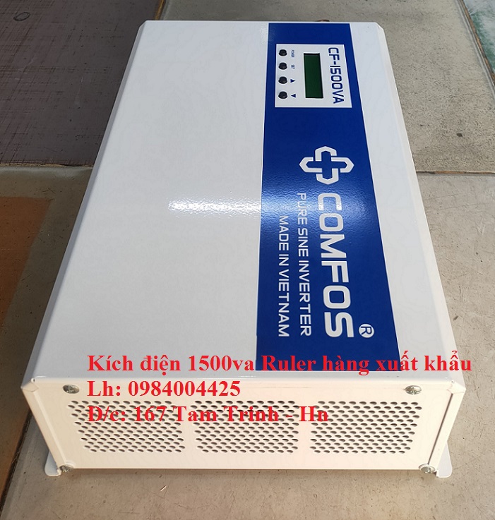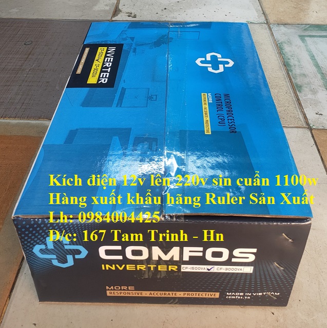 - Kích điện 12v lên 220v 1000w là hàng do hãng Ruler sản xuất, xuất khẩu sang các thị trường Đông Nam Á như Myanma, Lào, Campuchia, Thái Lan... Mang thương hiệu Comfos, chất lượng cự tốt, sin chuẩn, có chế độ chọn dòng sạc nên phù hợp với mọi loại ắc quy, bền và đẹp, bảo hành 02 năm