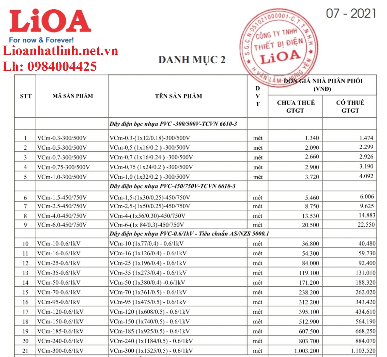 - Công ty chúng tôi ưu tiên khách hàng mua số lượng lớn, khách hàng dự án....Hãy liên hệ với chúng tôi để nhận báo giá dây điện lioa chiết khấu cao nhất