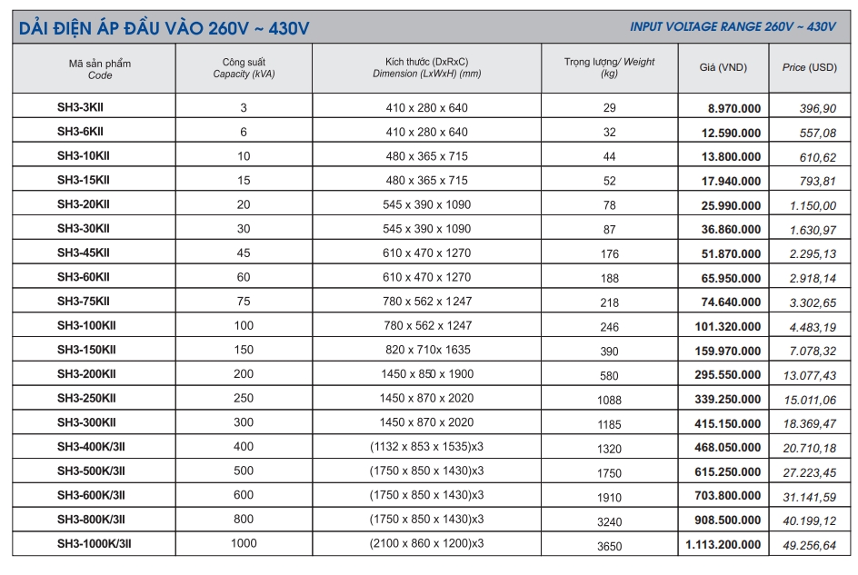 GIÁ LIOA 10KVA 3 PHA MODEL SH3 - 10K II LÀ 9.700.000VNĐ