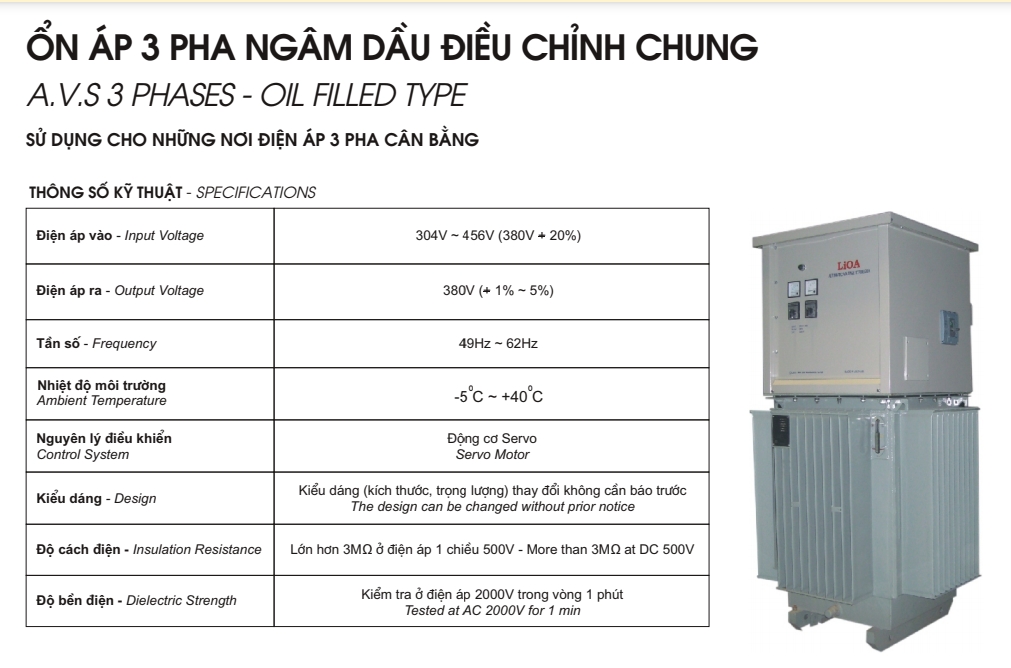 ỔN ÁP LIOA 600KVA 3 PHA NGÂM DẦU GIÁ BÁN 390.000.000VNĐ