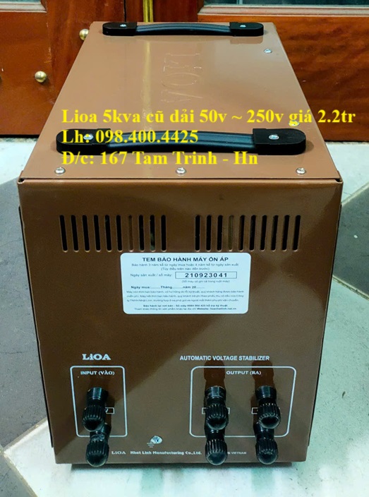 Hiện tại công ty TNHH Sx và Tm ổn áp Nhật Linh - Việt Nam đang có một số ổn áp lioa 5kva cũ, lioa 5kw cũ điện áp vào (150v ~ 250v), (90v ~ 250v), (50v ~ 250v, ổn áp lioa 5kva cũ còn nguyên bản, dây đồng 100% đã bảo trì bảo dưỡng toàn bộ máy, mới 80% trở lên cần bán thanh lý với giá rẻ, bảo hành 02 năm, lắp đặt vận chuyển miễn phí