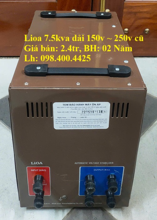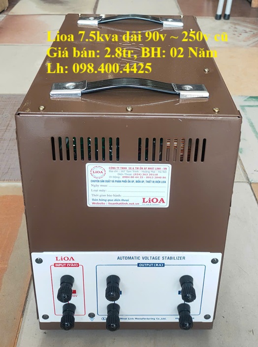 Hiện tại công ty TNHH Sx và Tm ổn áp Nhật Linh - Việt Nam đang có một số ổn áp lioa 7.5kva cũ, lioa 7kw cũ điện áp vào (150v ~ 250v), (90v ~ 250v), (50v ~ 250v, ổn áp lioa 7kva cũ còn nguyên bản, dây đồng 100% đã bảo trì bảo dưỡng toàn bộ máy, mới 80% trở lên cần bán thanh lý với giá rẻ, bảo hành 02 năm, lắp đặt vận chuyển miễn phí