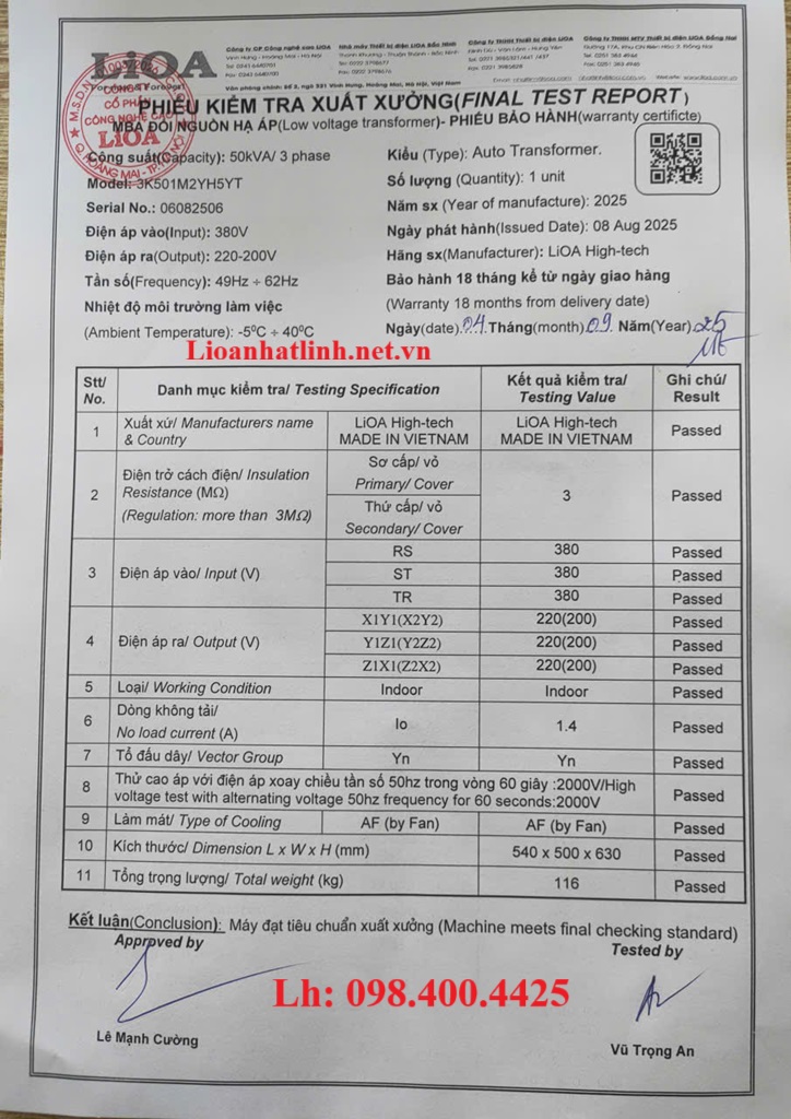 Thương hiệu: Lioa Nhật Linh Loại: Biến áp lioa 3 pha tự ngẫu