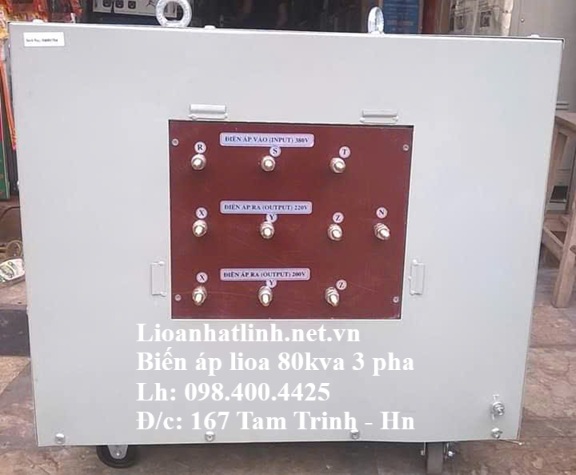 - Biến áp 80kva dùng để biến đổi điện áp 3 pha 380v thành điện áp 200v - 220v 3 pha mà tần số vẫn không thay đổi để sử dụng cho các thiết bị nhập khẩu từ Nhật Bản, Mỹ , Đài Loại...và các nhu cầu đặc biệt khác