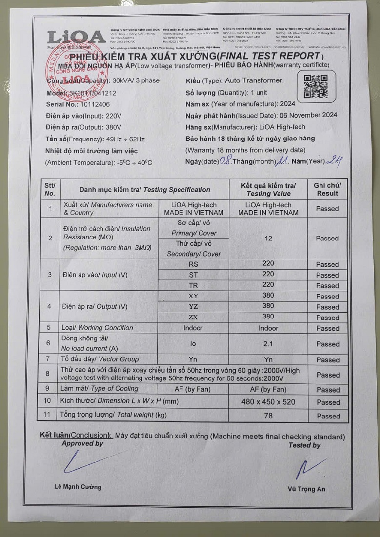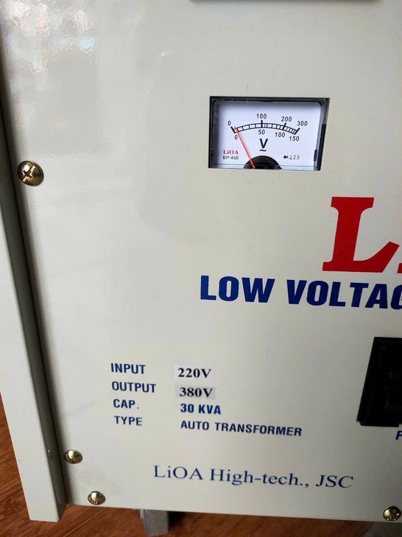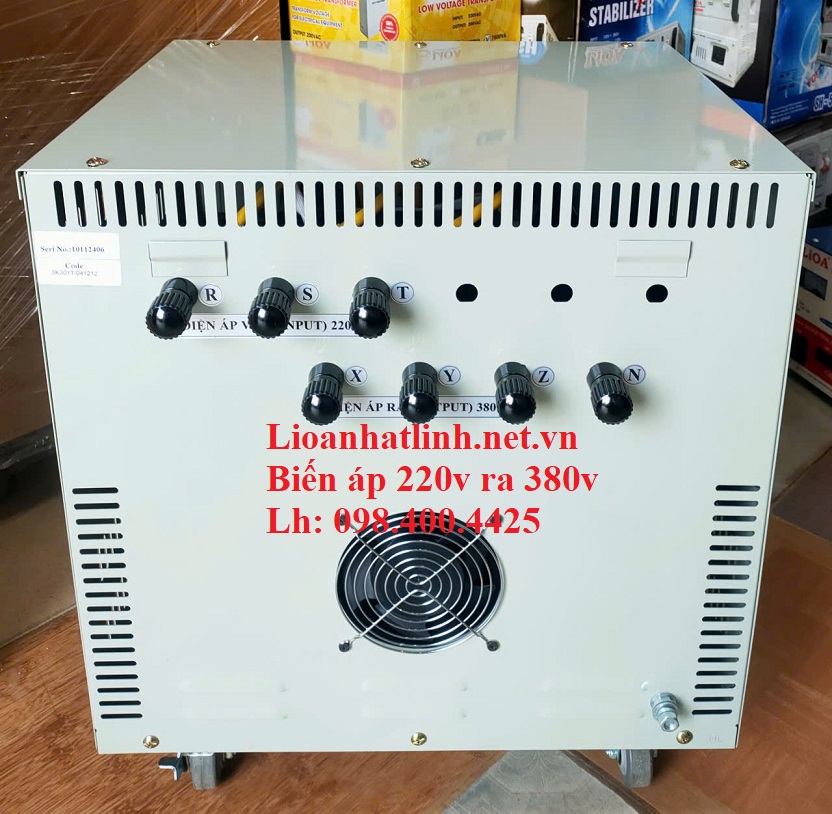 - Biến áp 220v lên 380v do công ty Lioa Nhật Linh sản xuất, bảo hành 18 tháng, miễn phí giao hàng trên toàn quốc