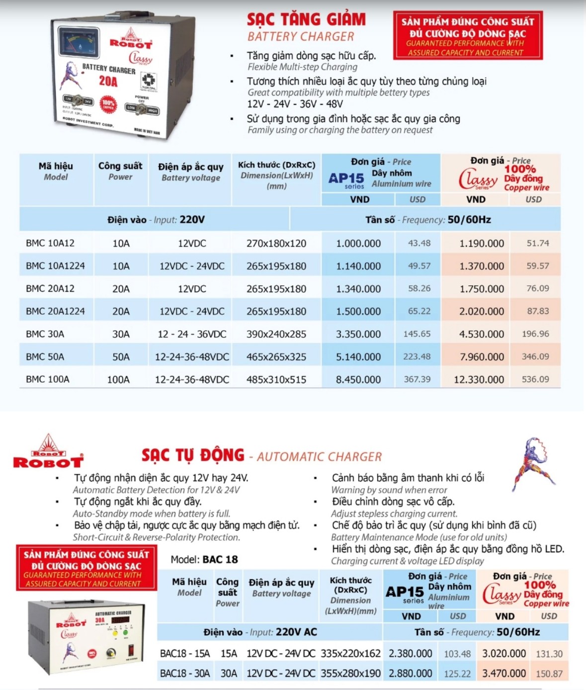 - Nạp ắc quy tăng giảm Robot thiết kế nhỏ gọn, rễ sử dụng, an toàn và hợn cả là giá rất cạnh tranh