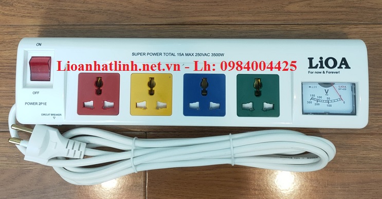 - Ổ cắm công suất lớn lioa 4OFSSV3-3 có bảo vệ quá tải bằng CB, có nắp che an toàn, có đồng hồ đo điện áp V