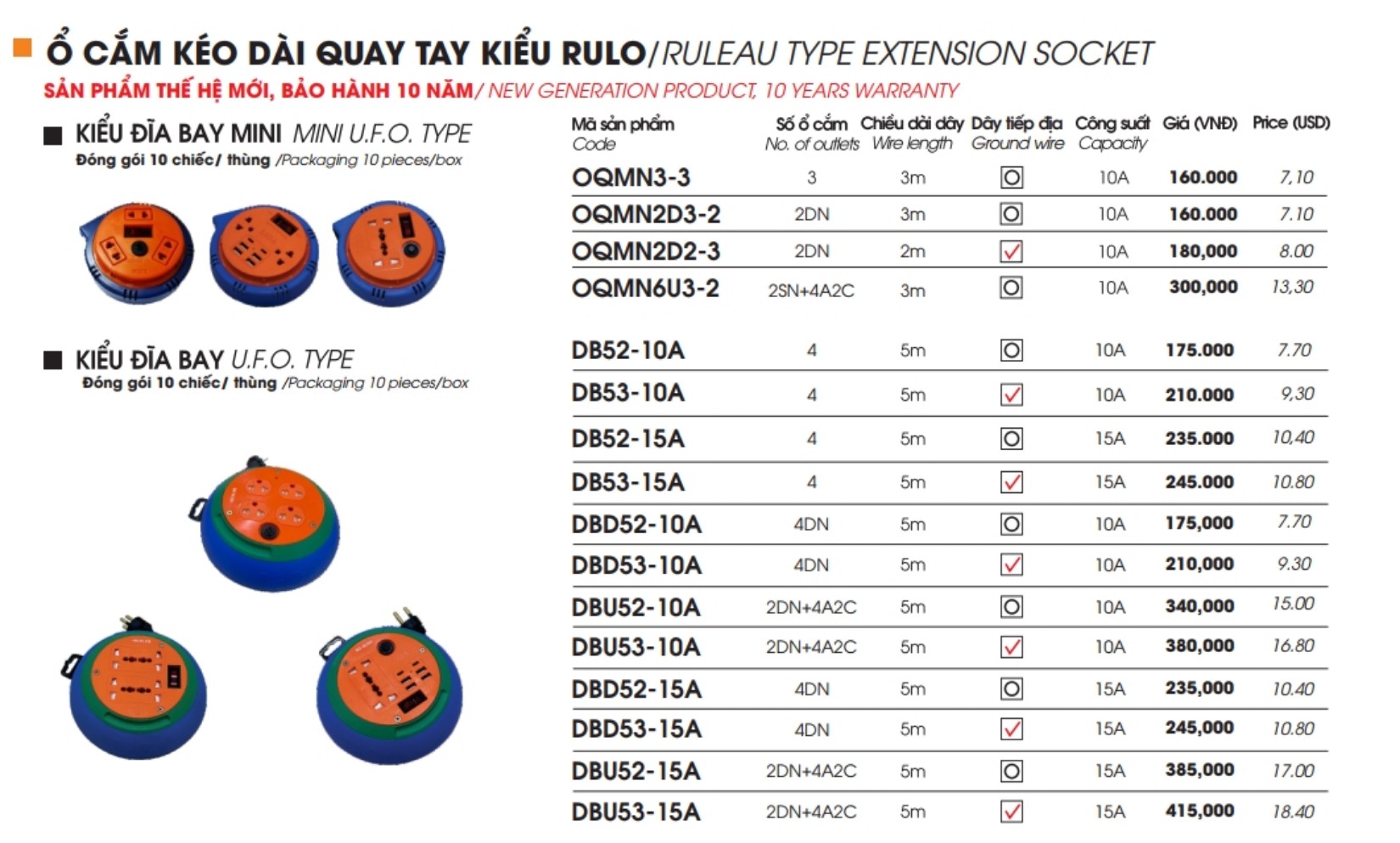 - Ổ cắm đĩa bay lioa dây 5mx2 db52-10a bảo hành 10 năm kể từ ngày mua, 06 tháng đầu nếu hỏng đổi cái mới