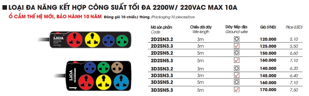 Thương hiệu: Lioa Nhật Linh Loại: Ổ cắm lioa đa năng - kết hợp
