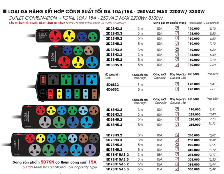 Thương hiệu: Lioa Nhật Linh Loại: Ổ cắm lioa đa năng - kết hợp