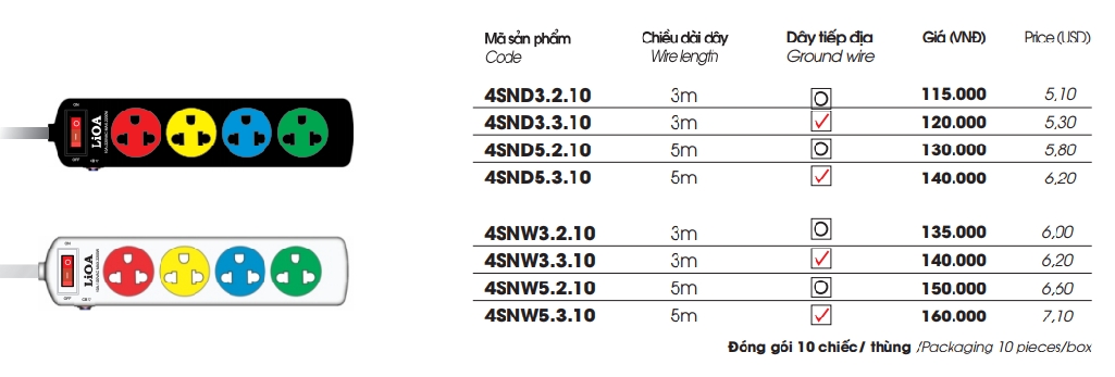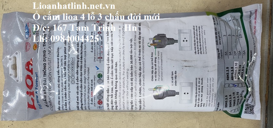 - Ổ cắm lioa 4 lỗ 3 chấu do công ty Nhật Linh sản xuất, bảo hành 10 năm, giao hàng miễn phí trên toàn quốc.