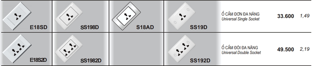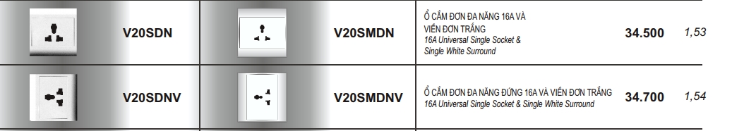 - Dưới đây là bảng giá niêm yết ổ cắm đôi 3 chấu loại vuông các loại