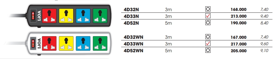 Ổ cắm điện lioa 4d32n có vỏ ổ cắm màu đen, ổ cắm mầu xanh, đỏ, vàng, nâu..... |