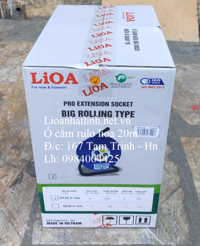 - Ổ cắm điện lioa 20m do công ty Nhật Linh sản xuất, dây dẫn bằng đồng 100%, bền và đẹp, bảo hành lên đến 10 năm, miễn phí giao hàng trên toàn quốc