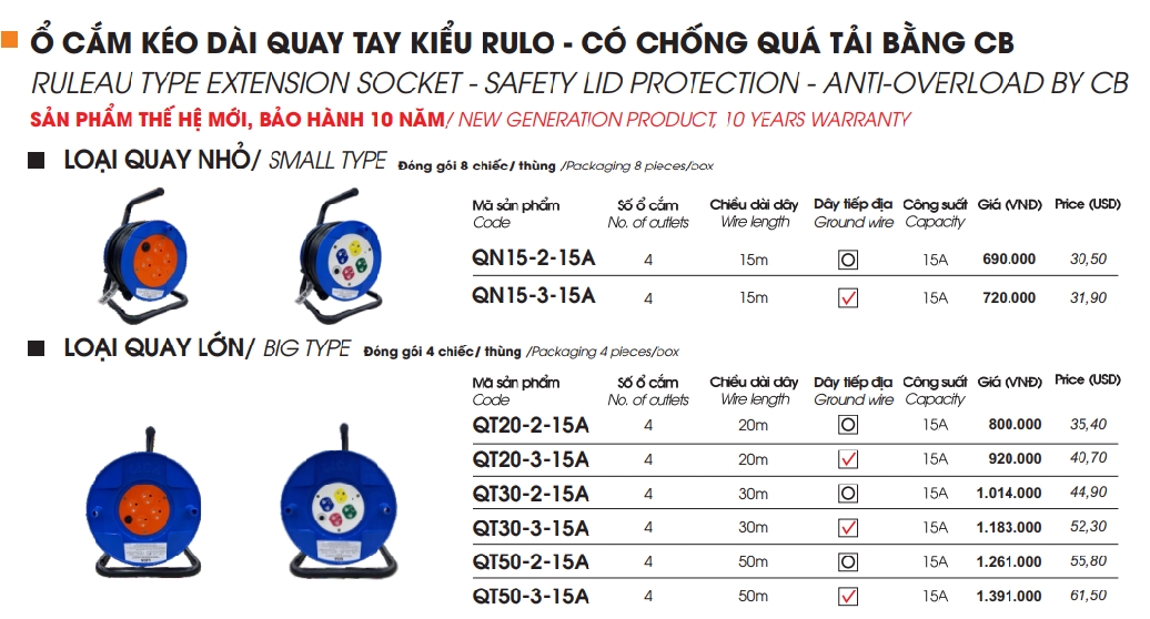 - Ổ cắm lioa 30m QT30 - 2 - 15A là loại ổ cắm kéo dài rulo quay tay phổ thông, bán rất chạy hiện nay