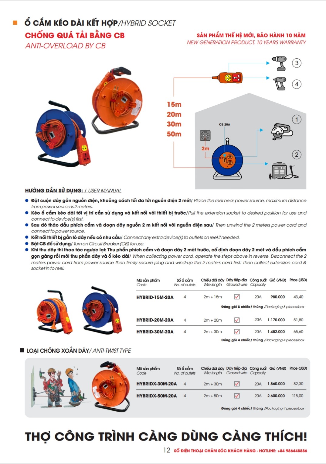 - Ổ cắm rulo 30m thế hệ mới bảo hành 10 năm kể từ năm sản xuất ( Năm sản xuất có nghi trên ổ cắm )