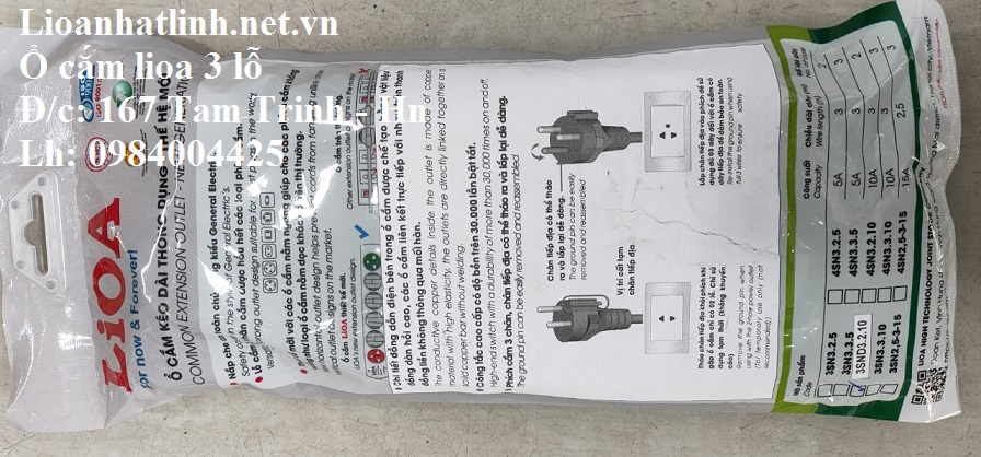 - Ổ cắm điện lioa 3 lỗ 3m do công ty Nhật Linh sản xuất, bảo hành 10 năm, giao hàng miễn phí trên toàn quốc