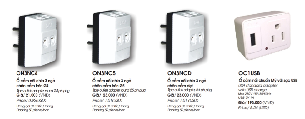 - Ổ cắm nối chia 3 ngả, ổ cắm điện 1 ra 3 các loại model on3nc4, on3nc5, on3ncd, oc1usb
