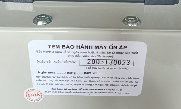 - Lioa 3 pha 3kva bảo hành 48 tháng kể từ ngày sản xuất ( Không có chế độ đổi mới)