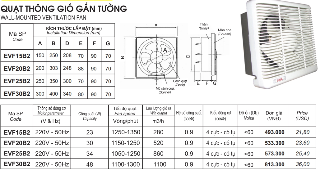 Ưu điển vượt trội quạt thông gió lioa evf20b2 |