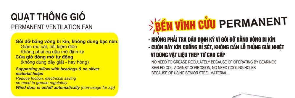 - QUẠT THÔNG GIÓ LIOA EVF20B2 BỀN VĨNH CỬU, KHÔNG PHẢI TRA DẦU MỠ ĐỊNH KỲ, GIẢM MA SÁT, TIẾT KIỆM ĐIỆN DO GỐI ĐỠ MƠ TƠ BẰNG VÒNG BI KÍN....